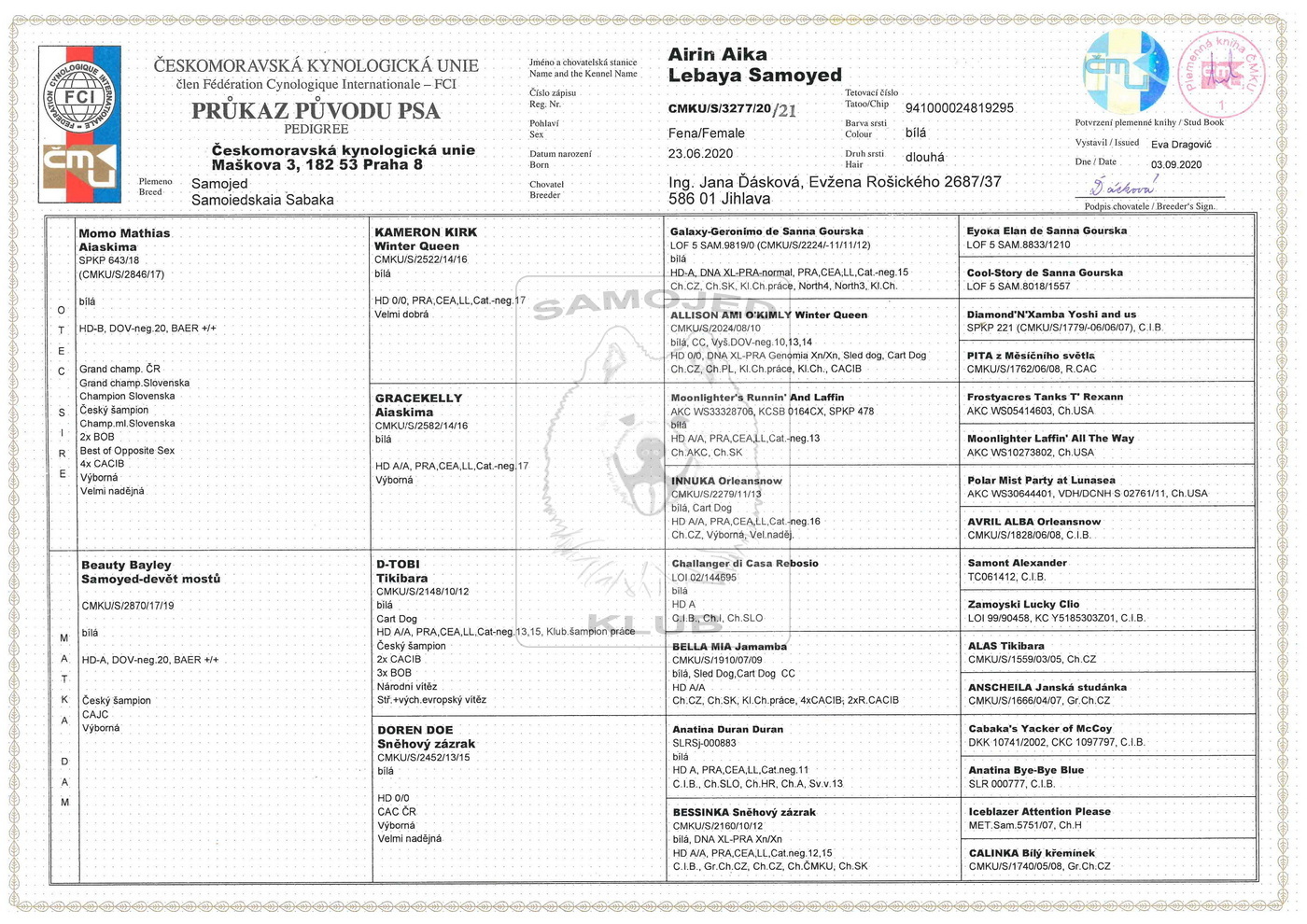 • Pedigree reg. No: CMKU/S/3277/20/21