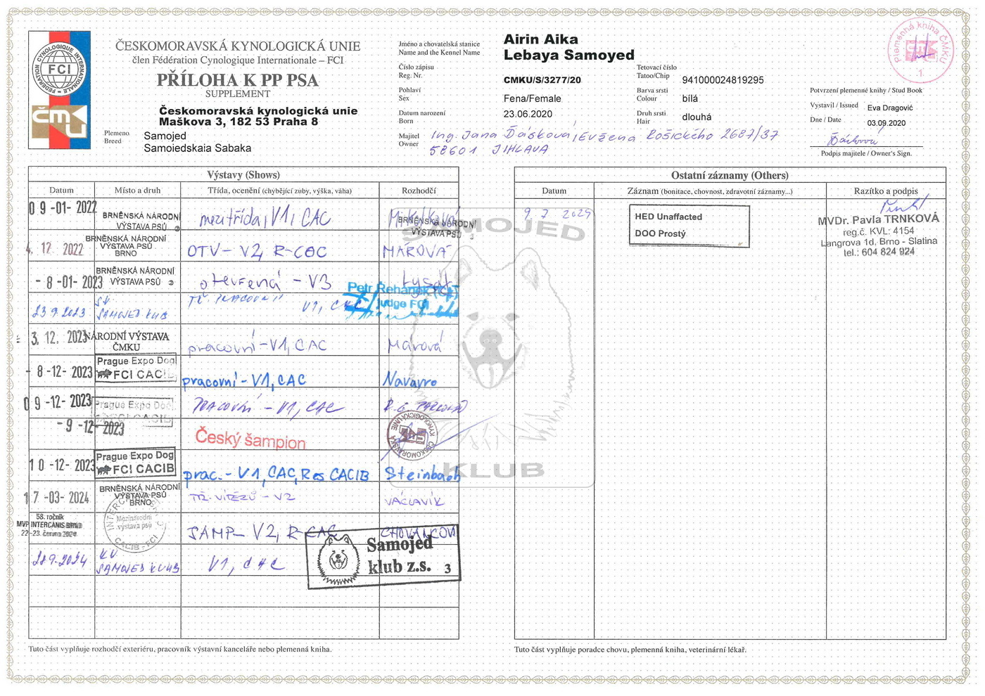 • Show awards and titles: Czech Champion, CzechJun.Champion, 2xBOJ, Jun.Winner of the Special Show, R-Cacib
