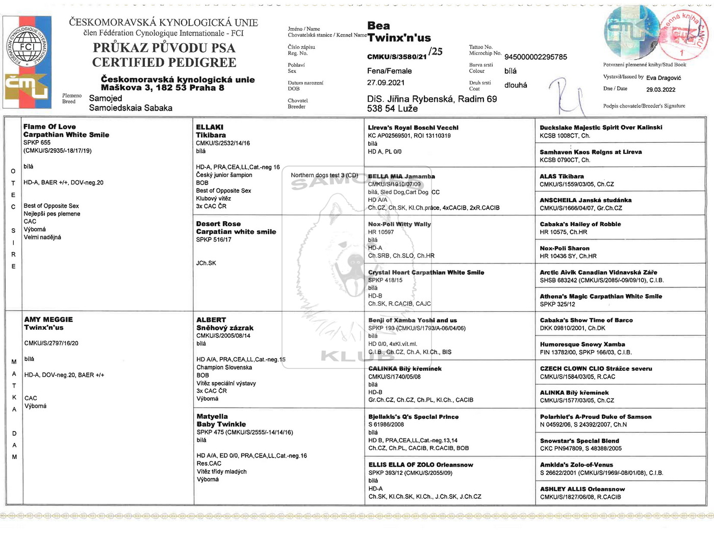 • Pedigree reg. No: CMKU/S/3580/21/25