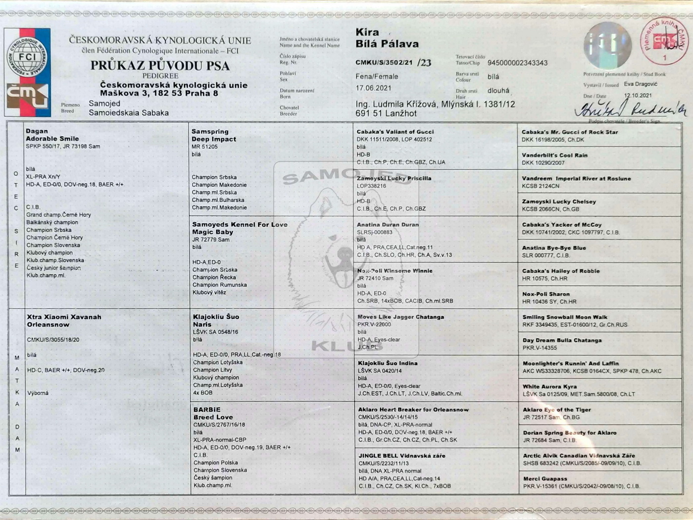 • Pedigree reg. No: CMKU/S/3502/21/23