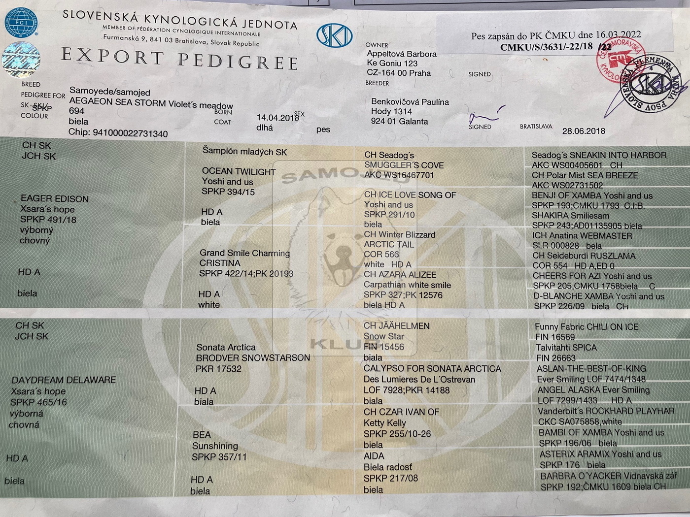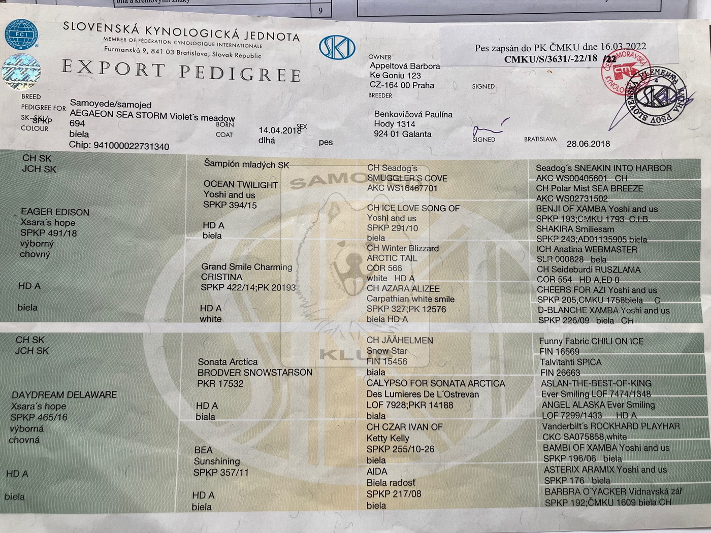 • Pedigree reg. No: CMKU/S/3631/-22/18/22