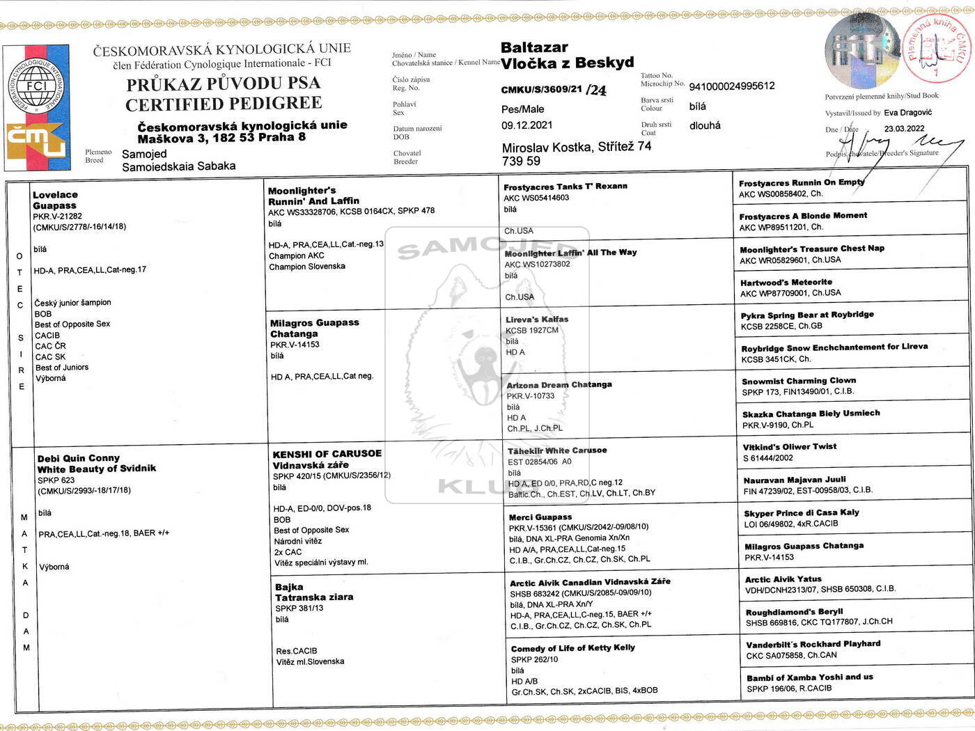 • Pedigree reg. No: CMKU/S/3609/21/24